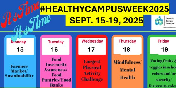 Healthy Campus Week allows campuses across the country to engage their students in healthy activities and wellbeing education (9/15-9/19 #HealthyCampusWeek2025). See videos of daily activities.